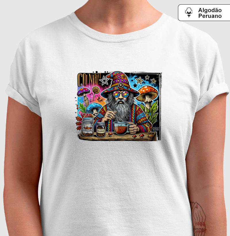 Camiseta Algodão Peruano BR00003 Quero Chá de Cogumelo